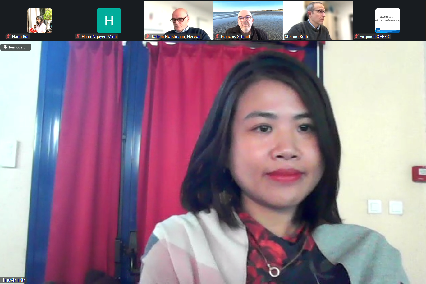 The defense ceremony was attended by 06 members of the Examination Committee, including: Dr. Jochen Horstmann (Hereon, Germany); Assoc. Prof. Nguyen Minh Huan, Lecturer at the University of Science, Vietnam National University, Hanoi (VNU–HUS, Vietnam); Assoc. Prof. Tran Van Anh, Lecturer at Hanoi University of Mining and Geology (HUMG, Vietnam); Assoc. Prof. Stefano Berti, Lecturer at Polytech (France); Dr. François Schmitt, Scientist at the French National Centre for Scientific Research (CNRS, France);