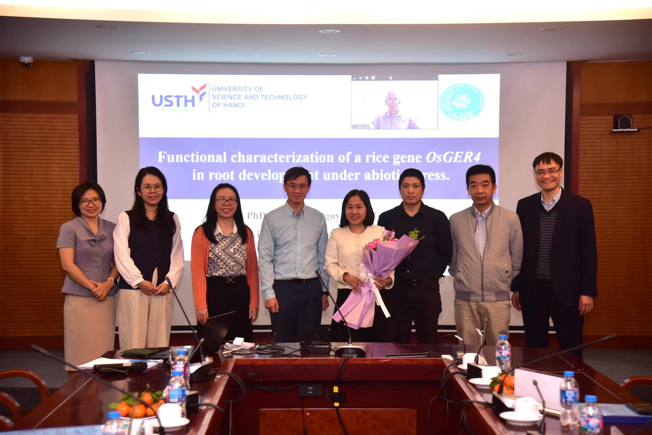 On December 19, 2025, the University of Science and Technology of Hanoi (USTH) held the doctoral dissertation defense for PhD candidate Nguyen Thi Trang, majoring in Pharmacological, Medical and Agronomical Biotechnology. The dissertation was entitled: “Functional characterization of a rice gene OsGER4 in root development under abiotic stress”.